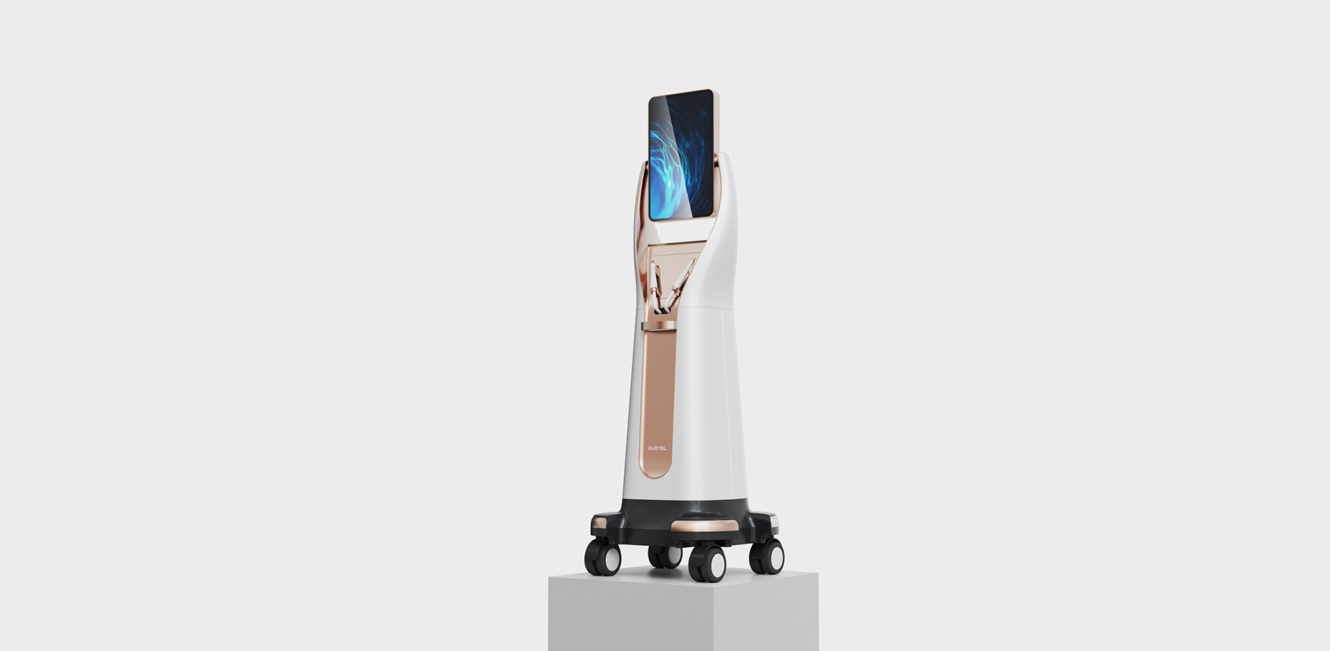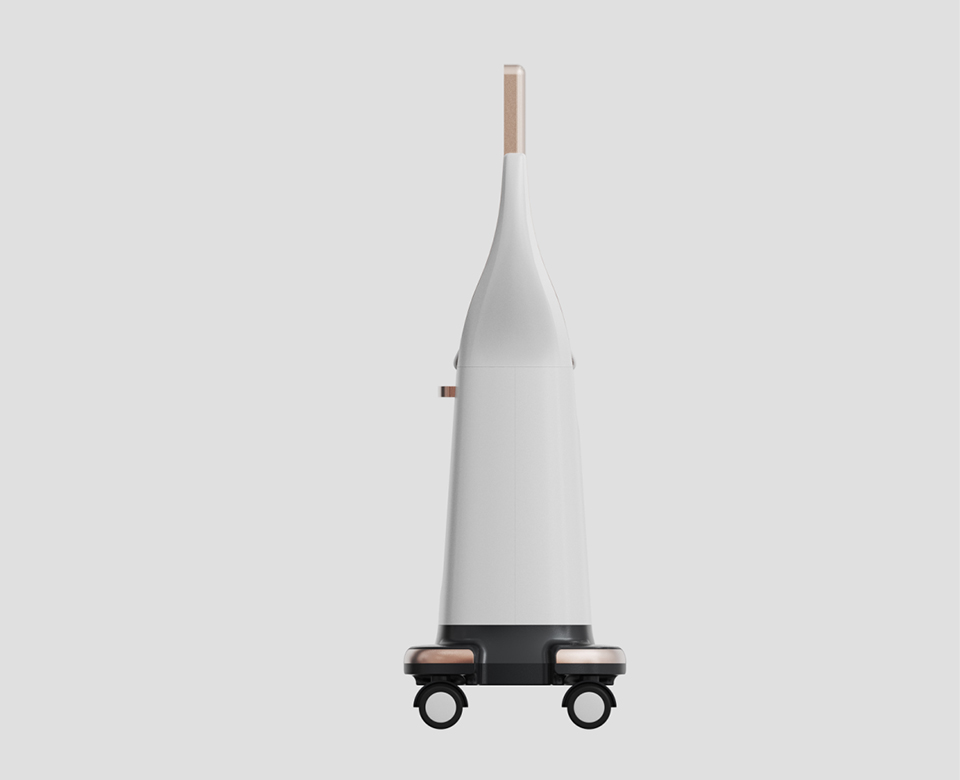 产品造型灵感来自于欧洲贵族女性服饰,顶部支架以大翻领为设计来源,整体以女性裙裾为造型,使设备整体凸显高贵,典雅,稳重的气质。