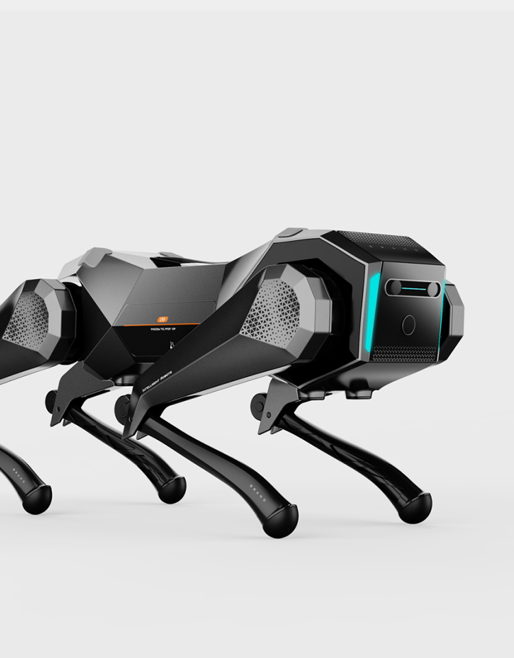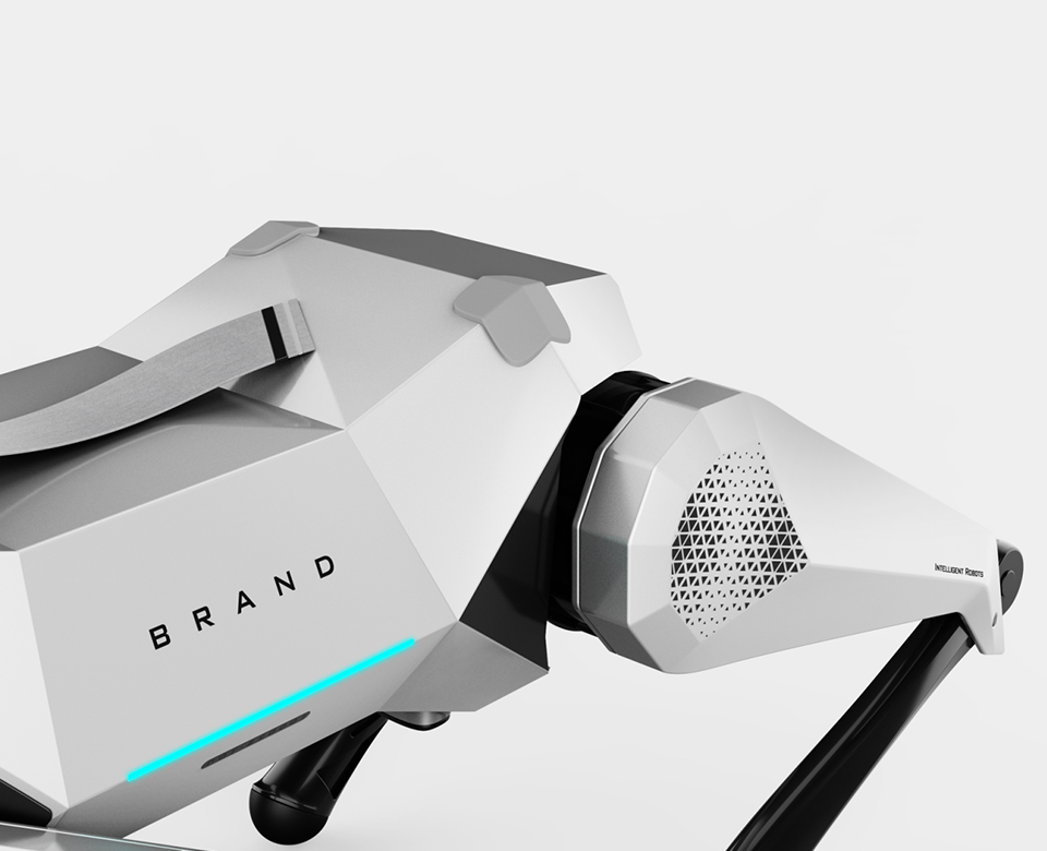 机身硬朗,身体和各关节采用切面设计语言,展现机器狗的力量感。采用模块化设计理念,便于生产和维护,提高产品灵活性。
