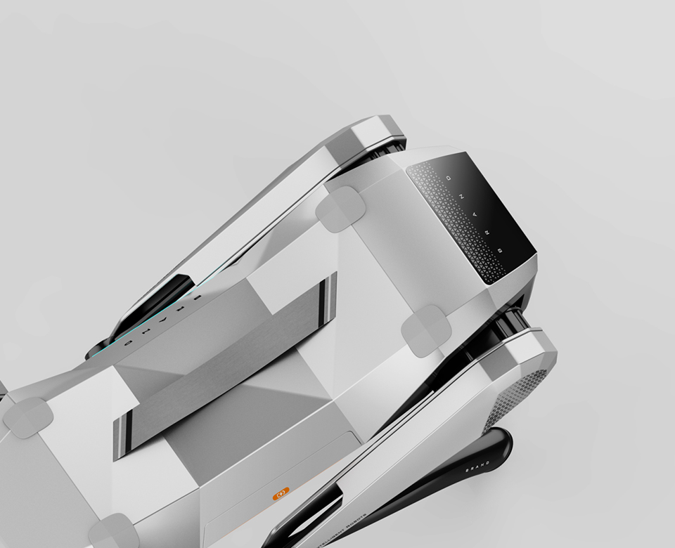 我们在设计中 暴露部分机械结构(如关节、连杆),强调机械的精准与力量感。形态可以更几何化、更具未来感。直观展示科技感,散热好,易于维护,结构强度高。