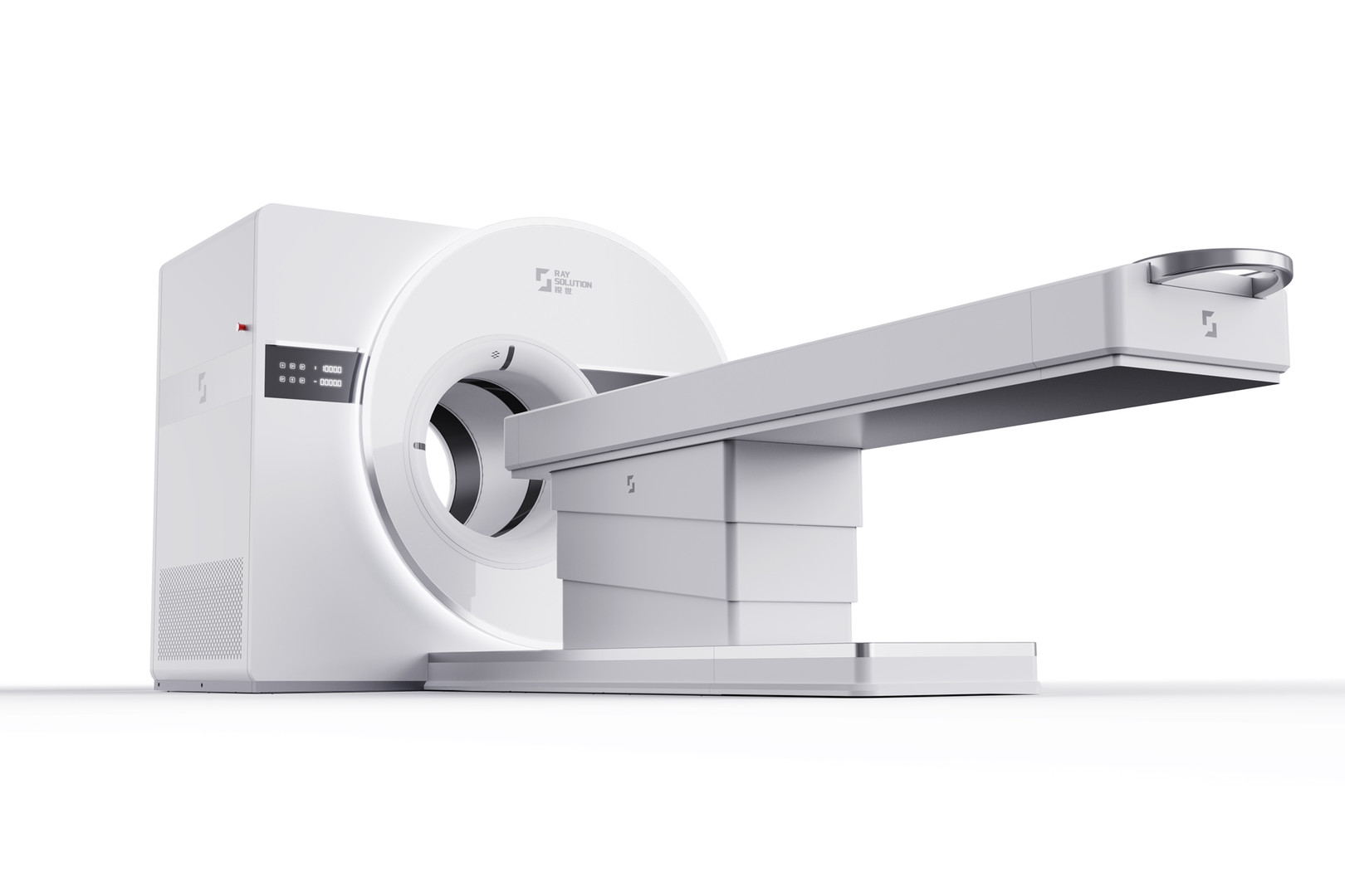 全数字PET通过自主原创的MVT方法,解决了传统PET因受到超高速闪烁脉冲信号采样问题制约而长期存在的“测不准、使用难、应用窄”三大短板问题,开辟和引领了PET行业的新方向。全数字PET/CT(DigitMI 930)拥有四大显著优势:4倍快速扫描,135s扫描全身;1/3剂量,药物剂量低至0.05mCi/kg;飞行时间249ps;图像精密像素达到1000*1000。设计风格方向遵循现在流行的简约精致专业风,采用偏心圆的设计方式加上方与圆的穿插形式,简洁明了,没有多余的线条,突出产品现代感与模块化的造型感。运用ABS材料,表面处理采用做细磨砂效果,同时结合亚克力材料,做背部丝印处理,增强质感。周边设计一圈银色装饰件,相互结合,突出产品未来感。整体颜色以白色为主,银色为辅,呈现出前卫科技的冷色调,设计圆形细长条白光氛围灯,提升产品科技感和专业感气质。