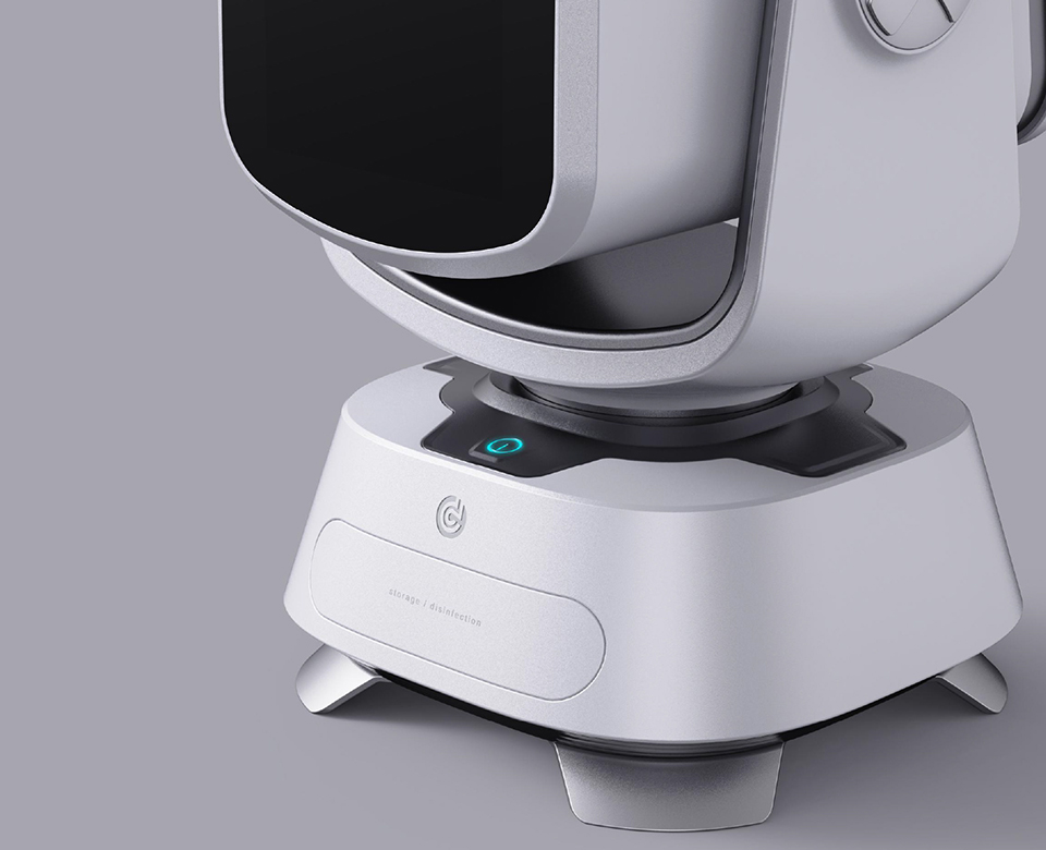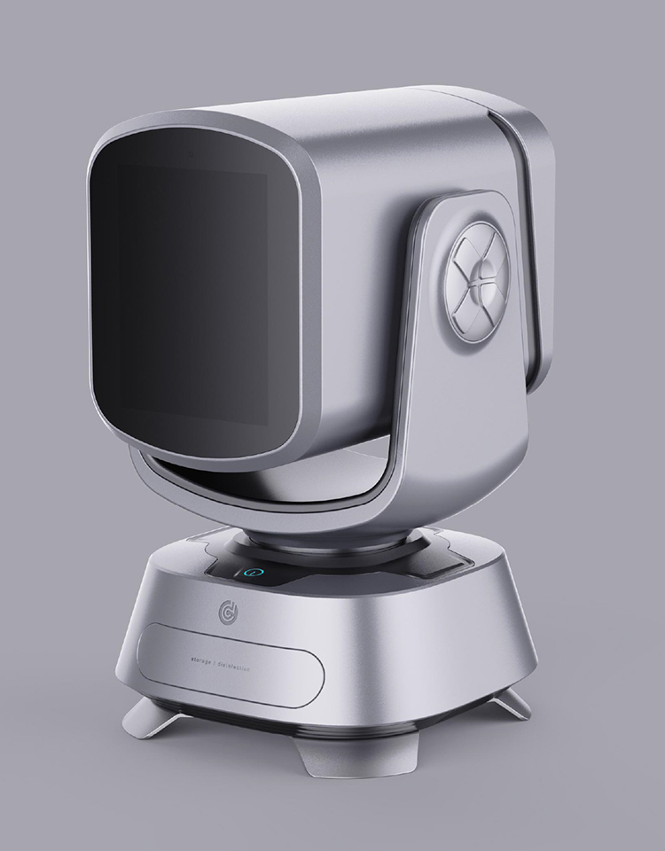 uccessful1、造型独特,富有科技感以及医疗设备的亲和感,上下点头设计满足用户人脸拍摄。2、360°左右旋转满足整个房间的监控。3、顶部把手设计方便用户移动。4、前脸采用大屏设计方便老年人查看自己的健康状况。
